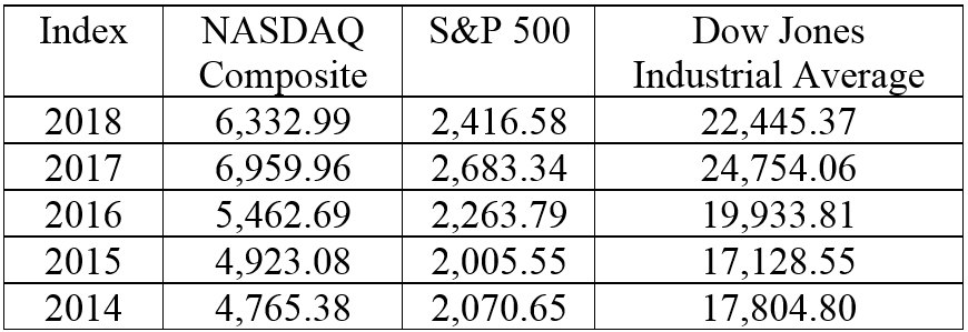 If you look at the value of any given index on the same trading day, year over year, you will likely see an interesting pattern. Most years, the value on that day is higher than it was on that same day, the previous year. (example below) This usually holds true for between two and five consecutive years, until there’s one year when the index’s value is below what it was the year before. 2018 was likely ‘that one year’, signaling a time when the market is “on sale”. Therefore, in a portfolio that is designed to meet the market, you can capitalize on a down-market, by buying into the market.